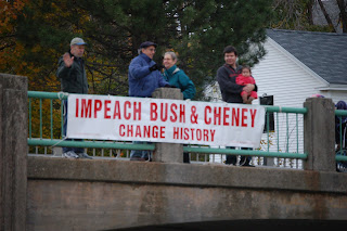 With the Kucinich maneuver to bring impeachment to the House of Representatives it was a good time to hang the banners. With help from Republicans, who admittedly want to call the bluff of the Democrats on impeachment, the Kucinich bill has now been sent to the House Judiciary Committee for hearings. The committee is chaired by Rep. John Conyers (D-MI) who has long been an advocate of impeachment - that is until the Dems took control of the House in 2006. Since he became the committee chair he has echoed the words of Nancy Pelosi that "impeachment is off the table."