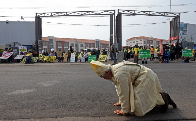 Activists are erecting traditional Korean totem poles (jang seung)
