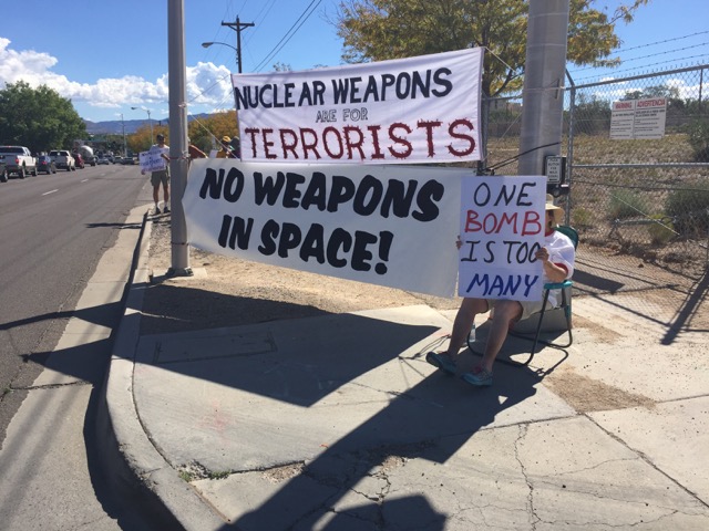 Space week protest at Kirtland Air Force Base in Albuquerque, New Mexico.