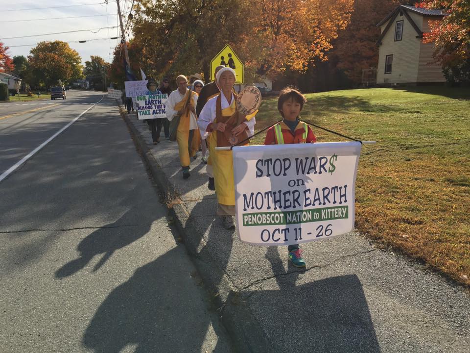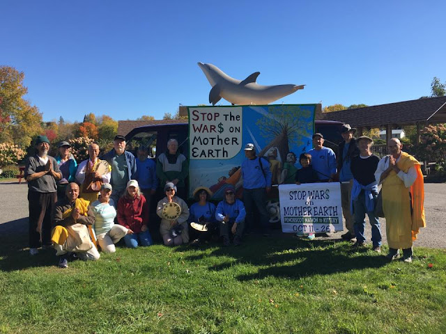I was invited to speak about conversion of the military industrial complex by our dear Buddhist nun friend Jun-san Yasuda who lead the construction of the pagoda when it was built 23 years ago. Jun-san has walked with us several times across Maine and will be coming again this year for our October 11-26 'Stop the War$ on Mother Earth' walk that starts next week. Many of the Nipponzan Myohoji monks currently serving their order in the US were at the ceremony and we will have a couple of them join our peace walk as well.