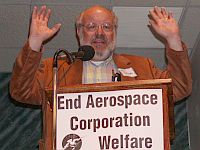 | In 2002 we held our annual conference in Berkeley, California and kicked things off with a protest outside of Lockheed-Martin space production center in Sunnyvale. |