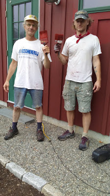 Fellow Maine peaceniks Russell Wray (left) and Jason Rawn painting a barn