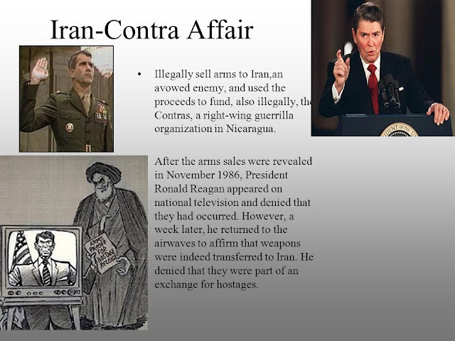 The Iran-Contra scandal is branded into my consciousness. It happened during the years of 1983-1988 when the Reagan administration was violating Congressional mandates not to arm the Contras in Nicaragua who were trying to overthrow the elected leftist government in that nation. Reagan ignored the law and armed the Contras anyway leading to much death and destruction.