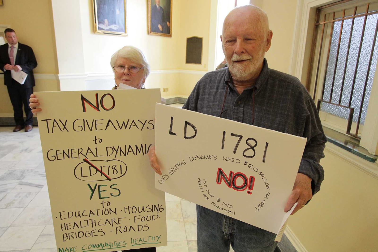 The Taxation Committee of the state legislature will likely vote ‘Ought to pass’ this week on LD 1781 [they actually delayed the bill until March 6] – the corporate give-a-way of $60 million to General Dynamics (GD). The bill will then go to the floor of the state House and Senate for final vote.