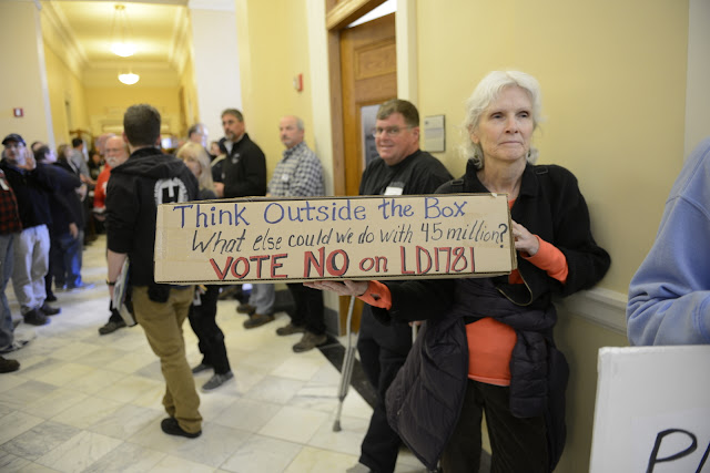 Sen. Mike Carpenter (D-Houlton) surprised us with his strong anti-bill words when he said, "There is no suggestion this company needs our help. This company is exploding with money."