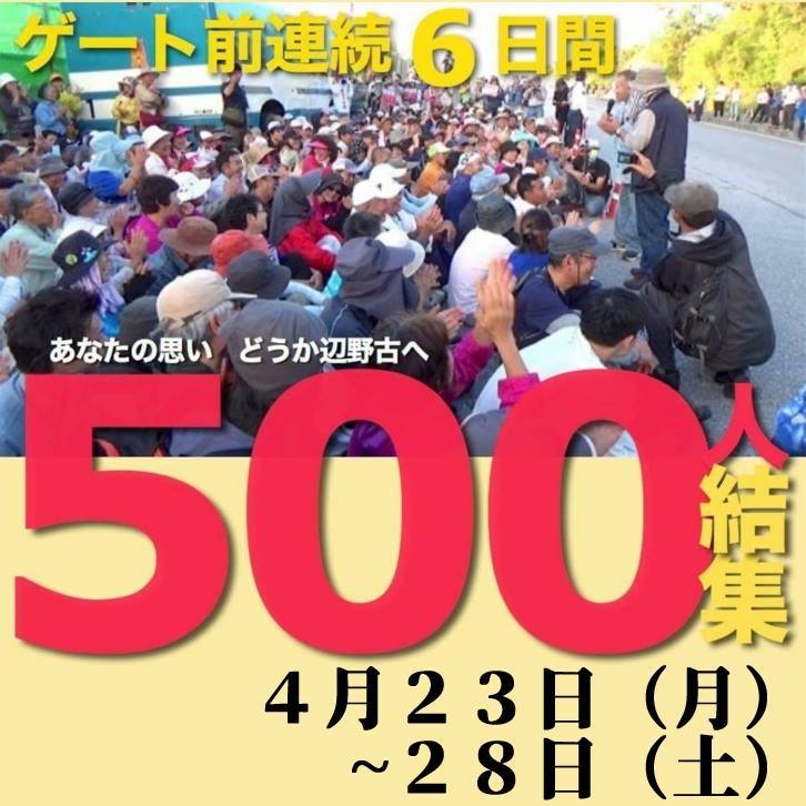 Nonstop Six-Day Protest of 500 in front of Henoko Gate
