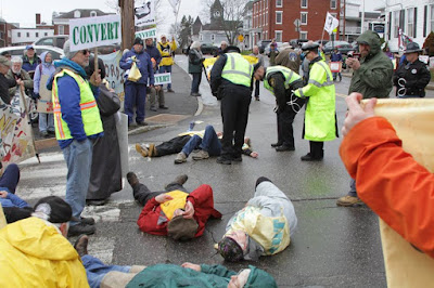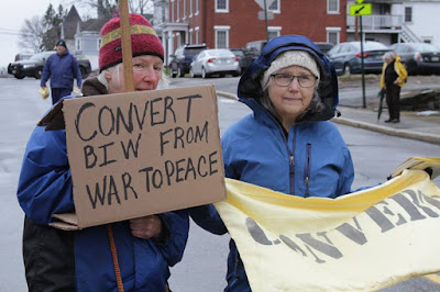 Former US Navy Academy graduate (and All-American lacrosse player) Dud Hendrick arrested at BIW. Dud is a Vietnam war veteran and now a member of VFP.