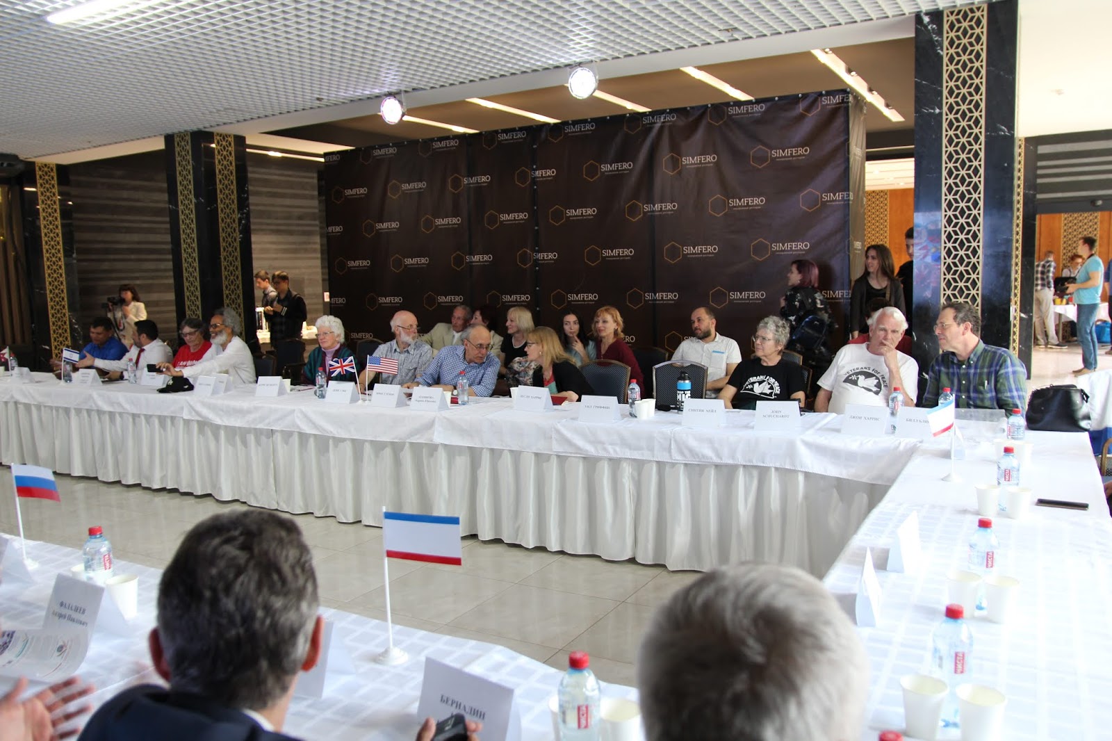 Leaders in Crimea spoke to us at a round table conference that was organized after the May Day parade. Four of us from our delegation spoke during the round table meeting. I used an outline to guide my short presentation so below is my best recollection of what I said. Lots of media interviewed us before and after the event. We also signed a Cooperation Agreement between the Black Sea Association for International Cooperation (NGO) and the Global Network.