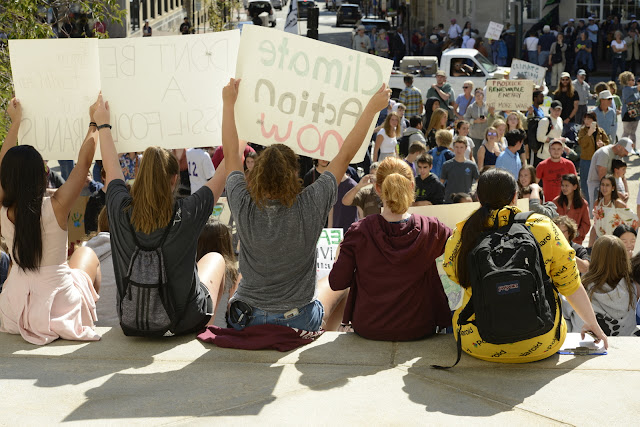 A group of us peaceniks attended the Student Climate Strike in Portland, Maine last Friday. Several of us arrived early and held signs and banners across the street from City Hall where the event was held. The newspaper reported that about 2,000 people turned out for the spirited event.