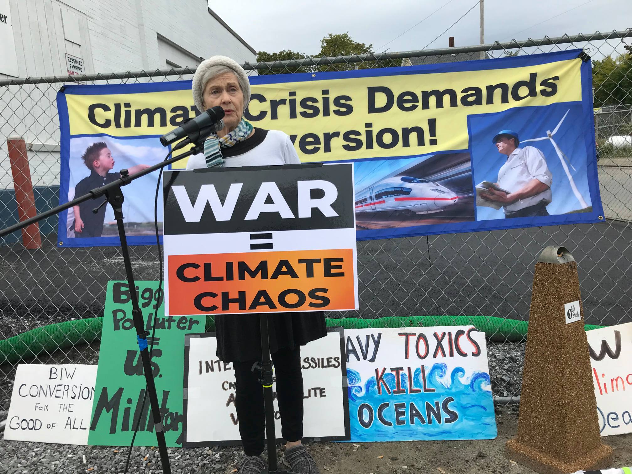 Protesters will gather at General Dynamics’ Bath Iron Works shipyard on Saturday July 29 at 9:30am to protest the christening of the Harvey C. Barnum Jr. DDG-124, an Aegis Guided Missile Destroyer capable of carrying nuclear weapons.